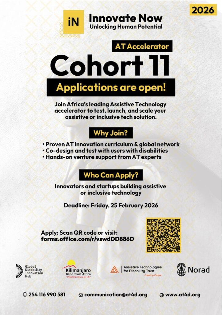 Innovate Now is Africa’s leading Assistive Technology (AT) Accelerator, established by the Global Disability Innovation Hub under the AT2030 Programme, implemented by Kilimanjaro Blind Trust Africa and Assistive Technologies for Disability Trust (AT4D), and funded by NORAD. The program equips AT startups with the knowledge, tools, and resources needed to design, launch, and scale inclusive solutions that improve the lives of persons with disabilities. Since its inception in 2019, Innovate Now has delivered 10 successful cohorts, supporting over 90 ventures led by more than 100 entrepreneurs across the 11 countries in Africa, the UK, and the USA. The program continues to drive a new wave of inclusive innovation across Africa’s assistive technology landscape.